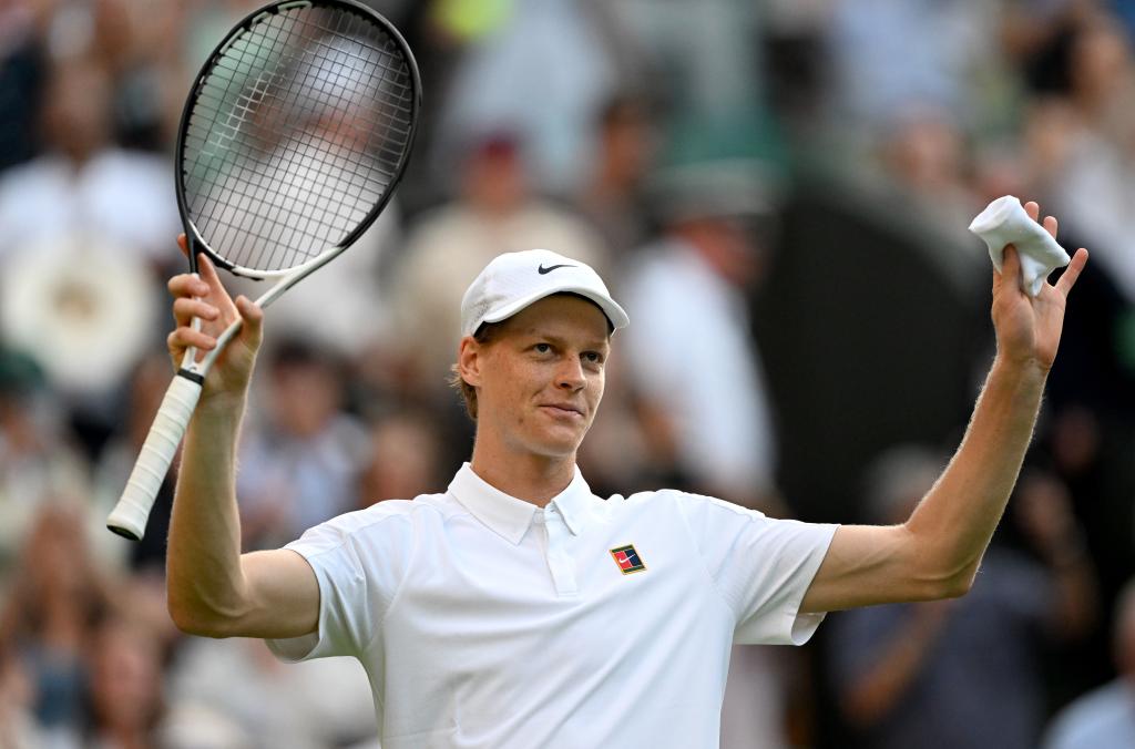 7月3日,辛納在比賽后慶祝勝利。新華社記者 李穎 攝 7屆溫網(wǎng)男單冠軍焦科維奇在一場老將對決中,以6:3、6:2和6:0輕松獲勝。這位38歲的網(wǎng)球傳奇人物爐火純青的技藝,讓比他年輕3歲的英國對手埃文斯在比賽中屢屢搖頭贊嘆。根據(jù)賽程,如果辛納和焦科維奇能夠繼續(xù)保持不敗,那么他們將在半決賽中碰面。