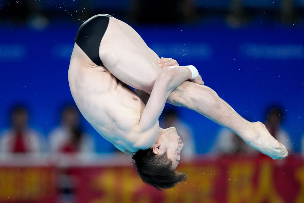 11月5日,山東隊選手練俊杰在男子個人全能10米跳臺比賽中。新華社記者 薛宇舸 攝
