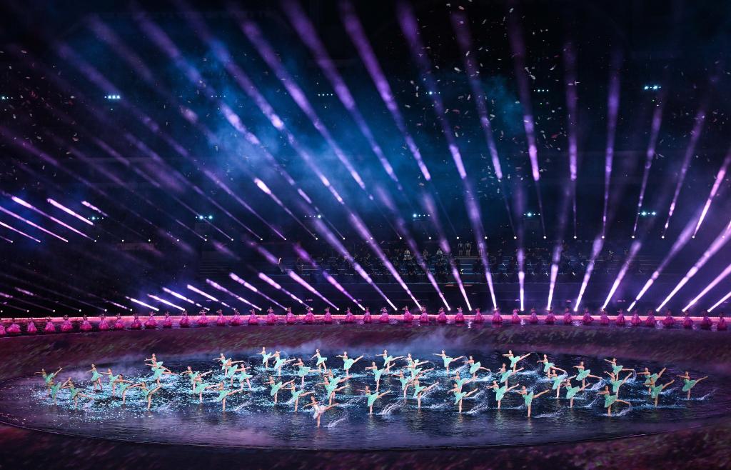 11月9日,第十五屆全國(guó)運(yùn)動(dòng)會(huì)開(kāi)幕式在廣東奧林匹克體育中心舉行,圖為演員在開(kāi)幕式現(xiàn)場(chǎng)表演。新華社記者 燕雁 攝
