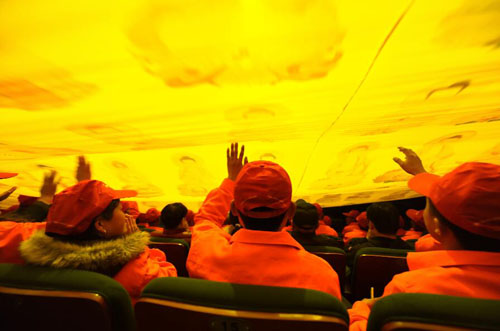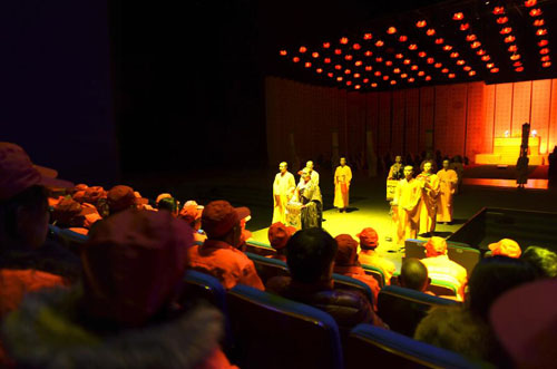 4月13日晚,五臺山風(fēng)景名勝區(qū)近200名環(huán)衛(wèi)工人成為《又見五臺山》大型情境體驗(yàn)劇場風(fēng)鈴宮內(nèi)的座上賓。五一將至,為了表達(dá)對五臺山景區(qū)美容師們——環(huán)衛(wèi)工人的感恩之情,又見五臺山劇場免費(fèi)邀請200多名景區(qū)一線環(huán)衛(wèi)工人免費(fèi)觀看節(jié)目,為大家送上了一份精神大餐。