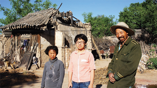 晏村是個有300多戶、3000多口人的村子,地勢高低不平,生活條件好些的村民搬遷到了城里或是村頭較為平整的地方居住了,留在村里的大部分是老人和小孩子。沿著彎彎曲曲、高低起伏的水泥路左拐右轉(zhuǎn),是宿香玲一家暫時寄居的地方——她故去叔叔的家。院子里也是幾間破舊的房子,屋內(nèi)墻壁、灶臺、土炕都是黑乎乎的,沒有一件像樣的家具,順著墻根有七八個大塑料袋,里面分別放著衣服和一些食用物品,宿香玲說,這些都是好心人和志愿者捐助的,這就是宿香玲家的全部家當(dāng)。