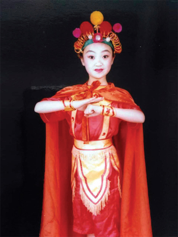 郝旸旸第一次真正唱戲是小學(xué)“六一”節(jié)時演唱《花木蘭》,這段豫劇《誰說女子不如男》伴隨了她整個童年,也給了她最好的啟蒙。這段《誰說女子不如男》是媽媽親自教給她的,小小的她竟然唱得有模有樣,當(dāng)時媽媽還教了其他同學(xué)幾個簡單的戲曲動作,大家共同的表演在學(xué)校受到了好評。憑借《誰說女子不如男》,郝旸旸獲得了忻州六中校園歌手大賽的第一名。說起這個第一名,郝旸旸自己樂了,“參加比賽的時候媽媽在外地演出,沒人給我化妝,我就想起有一個同學(xué)家是經(jīng)營影樓的,她媽媽會化妝。后來我給媽媽打了電話,說想讓那個阿姨幫我化妝,獲得媽媽的同意后,第二天一大早我就起床去了同學(xué)家,讓阿姨給我化了妝,最后比賽還獲得了第一名。現(xiàn)在想起來,感覺自己小時候還挺能干的。”
