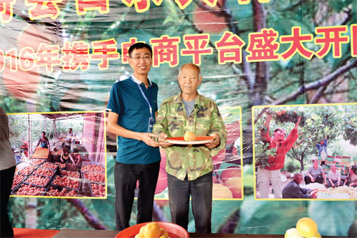 果農(nóng)張福成展示他的“杏王”