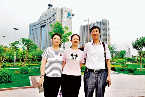 劉增芬、 呂勇、 呂卓蔚一家人在國家電網(wǎng)忻州供電公司辦公大樓外