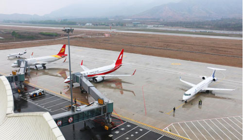 五臺(tái)山機(jī)場(chǎng)自2015年12月25日至今,開(kāi)航7個(gè)月共開(kāi)通了3條航線,可通達(dá)???、桂林、上海、銀川、重慶、天津6個(gè)城市,共保障航班764架次,公務(wù)機(jī)20架次。