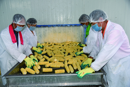 加工生產(chǎn)水果玉米的熱烈場(chǎng)面