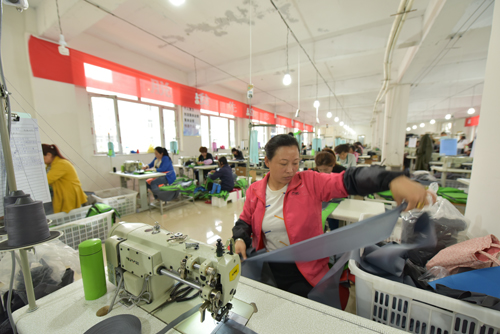 下茹越鄉(xiāng)的貧困戶蘇金娥是這家工廠的員工,“以前沒有工作,家里頭也挺困難,這會兒政府開設(shè)這個(gè)項(xiàng)目,我就過來試試,結(jié)果也挺好...這里有師傅教,每天可以學(xué)習(xí)...這幾天也熟練啦,每天可以做100多件,今年肯定能脫貧。”不善言辭的蘇金娥在提到這份工作時(shí)滿臉笑容,斷斷續(xù)續(xù)的敘述中可以感受到她那喜悅的心情。