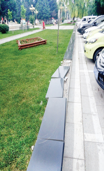 原平市市政府門前綠化帶西邊,草坪旁的地磚已損壞,急需修理,望相關(guān)部門關(guān)注。(一網(wǎng)友攝于7月6日)