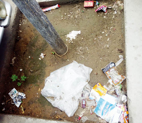 近日,記者在華榮區(qū)發(fā)現(xiàn),路旁的很多樹坑被當成了垃圾桶,人們隨手將果皮紙屑塑料袋扔在了里面,影響市容不說也污染了環(huán)境。樹坑內(nèi)垃圾不但難于清理,而且污水滲入土內(nèi)會導致樹木根部和樹皮底部的腐爛。同時,長久被油污浸泡的土地會變成“ 油土”,樹木無法正常呼吸,最終導致死亡。馬路兩旁的行道樹不僅可以凈化空氣、美化市容市貌,在夏天的時候還能給行人提供天然的蔭涼。希望附近的居民能夠管住自己的手,不要再向樹坑內(nèi)扔垃圾,養(yǎng)成愛護環(huán)境的文明習慣。實習記者 王菲 攝