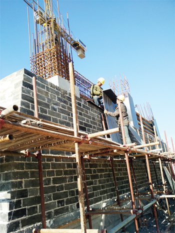秀容古城城墻修復(fù)工地