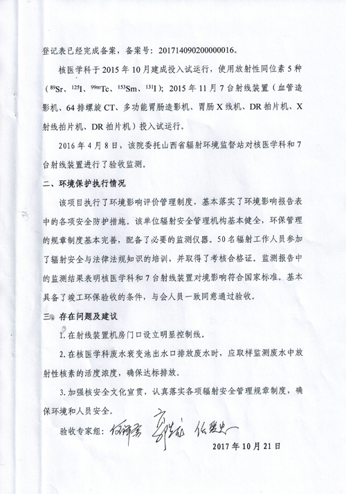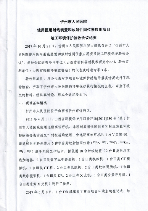 忻州市人民醫(yī)院環(huán)保驗(yàn)收公告