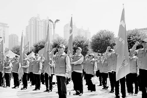 圖為國網(wǎng)忻州供電公司黨員服務(wù)隊(duì)進(jìn)行集體宣誓。