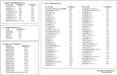 自2018年12月10日市委、市政府辦公廳發(fā)出《關(guān)于開展“送溫暖、獻愛心”社會捐助活動的通知》(忻辦字【2018】86號)以來,市四大班子領(lǐng)導率先垂范,各縣(市、區(qū))、各單位高度重視,緊急部署,廣大干部職工積極響應,踴躍捐款,又一次掀起了“送溫暖、獻愛心”社會捐助活動的高潮。截至2019年4月25日下午4時,全市累計接收捐款2802113元,其中市直79個單位組織參加了此次捐助活動,共計捐款585095元;各縣(市、區(qū))接收捐款2217018元,為解決我市困難群眾的生產(chǎn)、生活問題,助推脫貧攻堅起到了積極的作用。現(xiàn)將活動進展情況公告如下(市直單位以捐助時間先后為序):