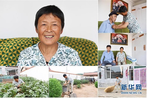 王月蘭,女,1949年出生,山西省長(zhǎng)治市沁源縣南峪村人。因老伴劉光明身患重病,王月蘭一家于2018年被納入建檔立卡貧困戶。在健康扶貧政策的幫助下,老伴看病的巨額醫(yī)藥費(fèi)用報(bào)銷比例超過80%。王月蘭說,希望老伴身體越來越好,一家的生活也越來越好。 左上:王月蘭肖像;右上:王月蘭在家中照顧老伴劉光明;右中:王月蘭(右)和老伴劉光明在家中合影;下右:王月蘭在家中打掃院子;下中:王月蘭在家里用自來水洗手;下左:王月蘭在家中管護(hù)蔬菜(拼版照片,6月20日攝)。 地處晉東南的山西省長(zhǎng)治市,位于由太行山、太岳山環(huán)繞而成的上黨盆地中。在群山中、崖壁上,許多村莊自然條件惡劣,基礎(chǔ)設(shè)施落后,脫貧致富是大山深處人們的迫切心愿。 近年來,一場(chǎng)場(chǎng)脫貧攻堅(jiān)戰(zhàn),在一個(gè)個(gè)深山村打響。政府全力探索脫貧路徑的同時(shí),山區(qū)百姓因地制宜,靠自己的雙手和智慧走上致富路,交出了一份扎實(shí)的脫貧答卷。 記者在太行山、太岳山一路尋訪,記錄下多位70歲老人的生活。這些共和國(guó)的同齡人,親歷了山鄉(xiāng)的巨變,見證著長(zhǎng)治山區(qū)脫貧攻堅(jiān)偉大工程的一步步推進(jìn)。 新華社記者 楊晨光 攝