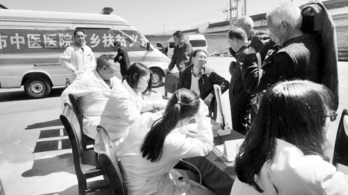 胡家溝村有貧困戶(hù)80戶(hù)。市委老干部局從2015年開(kāi)始進(jìn)行幫扶,緊緊圍繞“一戶(hù)一名技術(shù)工,做好精準(zhǔn)扶貧”的工作思路,在技能培訓(xùn)、項(xiàng)目實(shí)施、基礎(chǔ)建設(shè)、教育援助、文藝活動(dòng)等方面開(kāi)展了大量卓有成效的工作,在2016年底取得了整村脫貧的好成績(jī)。這次健康扶貧行動(dòng),是市委老干部局認(rèn)真貫徹全市脫貧攻堅(jiān)大會(huì)精神,鞏固成績(jī)、持續(xù)發(fā)力,不斷推進(jìn)幫扶成果的具體體現(xiàn)。針對(duì)村民對(duì)疾病預(yù)防和治療方面的需求,市委老干部局聯(lián)系市中醫(yī)院組織了義診活動(dòng)。市中醫(yī)院內(nèi)科、外科、心內(nèi)科等多個(gè)科室的9名醫(yī)務(wù)骨干和老專(zhuān)家,為貧困村民把脈問(wèn)診、開(kāi)方治療,使106名村民得到診療。