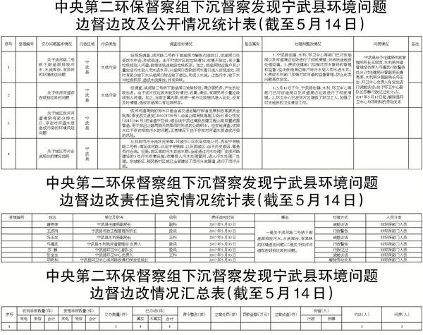 我市高度重視,立即責(zé)成寧武縣組織調(diào)查處理。截至5月14日,寧武縣已對(duì)全部環(huán)境問題進(jìn)行了整改,對(duì)3名相關(guān)責(zé)任人進(jìn)行了黨紀(jì)政紀(jì)處分,對(duì)3名責(zé)任人進(jìn)行了誡勉談話,對(duì)1名責(zé)任人解除勞動(dòng)關(guān)系,并責(zé)令寧武縣環(huán)保局黨組書記、局長(zhǎng)向縣委、縣政府作出深刻檢查,對(duì)此次調(diào)查處理情況進(jìn)行了信息公開。