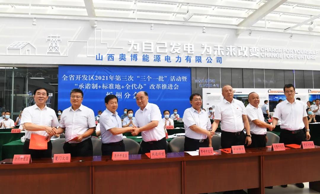 本報(bào)訊 (記者楊峰雷)7月16日,全省開(kāi)發(fā)區(qū)2021年第三次項(xiàng)目集中簽約一批、開(kāi)工一批、投產(chǎn)一批“三個(gè)一批”活動(dòng)暨“承諾制+標(biāo)準(zhǔn)地+全代辦”改革推進(jìn)會(huì)通過(guò)視頻連線方式舉行。我市作為分會(huì)場(chǎng)同步舉行相關(guān)活動(dòng),市委書記鄭連生在忻州分會(huì)場(chǎng)出席,市委副書記、市長(zhǎng)朱曉東主持忻州分會(huì)場(chǎng)簽約儀式。市委常委、秘書長(zhǎng)裴峰,副市長(zhǎng)范建民在忻州分會(huì)場(chǎng)出席。