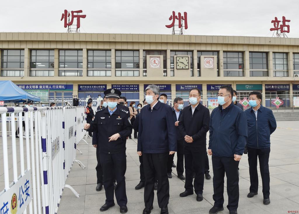 在忻州火車(chē)站調(diào)研來(lái)忻返忻人員“點(diǎn)對(duì)點(diǎn)”接返和隔離管控等工作落實(shí)情況。馮曉磊 攝