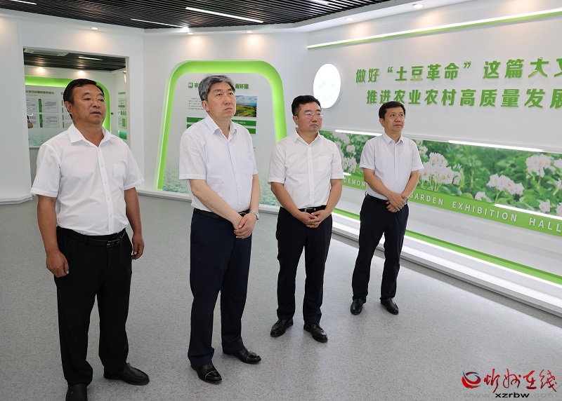 五寨是傳統(tǒng)農(nóng)業(yè)大縣,馬鈴薯種植歷史悠久。如今在小胡會村的馬鈴薯新品種、新技術(shù)示范基地,綠油油的馬鈴薯,白色小花競相開放,抬頭遠(yuǎn)眺,跨過大型移動噴灌設(shè)備,馬鈴薯苗一眼望不到邊。基地通過馬鈴薯新品種、新技術(shù)的示范,篩選出品質(zhì)優(yōu)、抗病性強(qiáng)、產(chǎn)量高、適宜本土種植的馬鈴薯新品種(系),推動馬鈴薯先進(jìn)適用栽培新技術(shù)的推廣應(yīng)用。朱曉東走進(jìn)田壟,察看薯苗長勢,與農(nóng)技專業(yè)人員交流,了解減化肥減農(nóng)藥試驗(yàn)情況,詢問菜用型馬鈴薯與加工型馬鈴薯的價值區(qū)別。他強(qiáng)調(diào),要切實(shí)把五寨80里丁字平川耕地資源用足用好,深研細(xì)究新品種新技術(shù),不僅要在馬鈴薯的塊莖上做文章,在莖、葉、花上都要深入研究,調(diào)動專業(yè)機(jī)構(gòu)專業(yè)人員在馬鈴薯花入茶、提取香精等更多方面努力探索,切實(shí)放大規(guī)模產(chǎn)業(yè)的獨(dú)特優(yōu)勢。