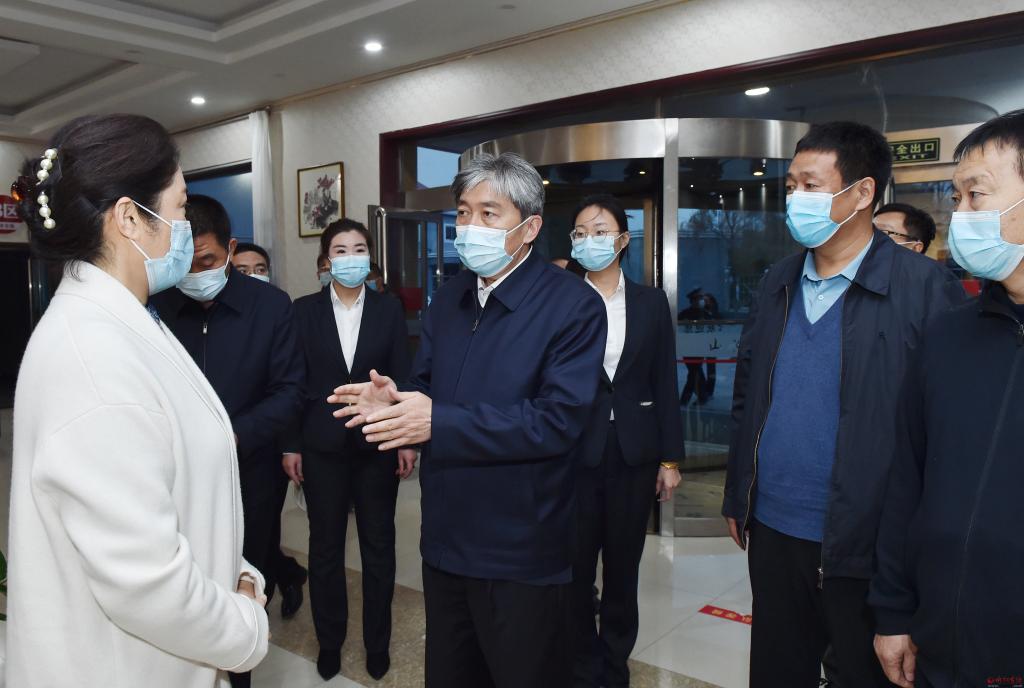 朱曉東一行先后來到忻州城區(qū)七一路和頓村、奇村等地酒店隔離點,每到一處,朱曉東都通過實地察看、聽取匯報、交流詢問等方式,詳細(xì)了解隔離場所管理運行、通道設(shè)置、工作人員配備、值班值守、環(huán)境消殺、物資儲備等情況,并就在督查中發(fā)現(xiàn)的問題現(xiàn)場提出整改意見。調(diào)研中,朱曉東還向奮戰(zhàn)在一線的醫(yī)護(hù)人員、后勤保障人員表示慰問,叮囑他們既要保障好隔離人員的正常生活,也要加強自我防護(hù),確保各項工作流程形成閉環(huán),堅決杜絕出現(xiàn)交叉感染。