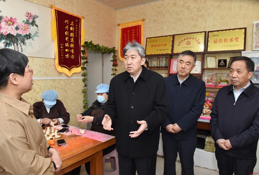非遺傳承人李紅霞主要從事面塑工藝品和花饃制作與銷售工作,由她創(chuàng)辦的紅霞鄉(xiāng)情守藝坊,吸收了當(dāng)?shù)責(zé)o業(yè)和老弱病殘人員20余人。走訪中,朱曉東來到李紅霞處,詳細(xì)了解面塑的歷史、現(xiàn)狀、未來發(fā)展方向,詢問她在經(jīng)營(yíng)、培訓(xùn)、傳承中存在的困難和問題。朱曉東指出,非遺傳承人是非物質(zhì)文化遺產(chǎn)重要的承載者和傳承者,在傳統(tǒng)文化和民間藝術(shù)的延續(xù)發(fā)展中發(fā)揮著關(guān)鍵性作用。要積極主動(dòng)為傳承人搭建展示推廣平臺(tái),讓珍貴的傳統(tǒng)技藝有序、有效傳承下去。希望傳承人進(jìn)一步堅(jiān)定文化自信,結(jié)合時(shí)代發(fā)展的特點(diǎn),不斷推陳出新,做好產(chǎn)品研發(fā)和創(chuàng)新,注重實(shí)用價(jià)值轉(zhuǎn)化,在宣傳、品質(zhì)、特色和工業(yè)化、標(biāo)準(zhǔn)化方面下功夫,開展好授徒傳藝,賦予非遺項(xiàng)目新的活力,將“小花饃”產(chǎn)業(yè)做大做強(qiáng)。