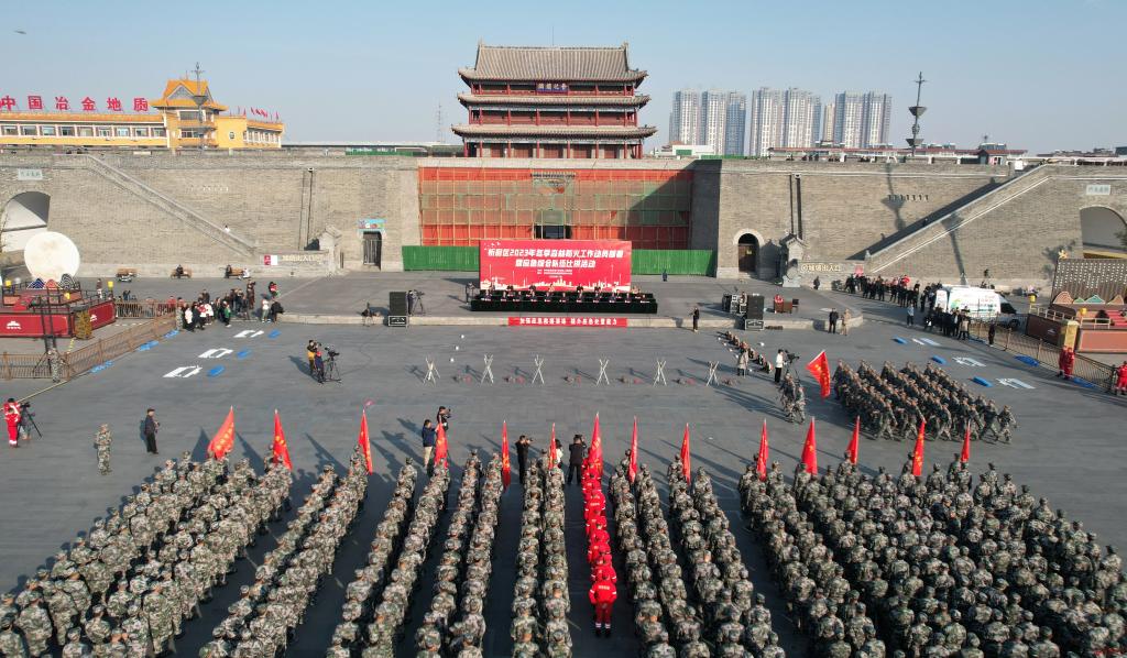 忻府區(qū)四大班子領(lǐng)導(dǎo)及18個鄉(xiāng)鎮(zhèn)(街道)應(yīng)急綜合隊伍、區(qū)應(yīng)急救援大隊、區(qū)人武部民兵應(yīng)急連等共計千余人參加活動。(張曄)