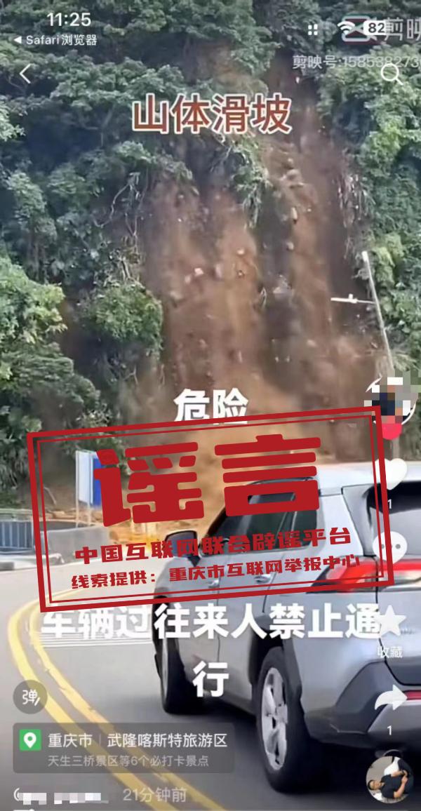謠言:重慶武隆喀斯特旅游區(qū)發(fā)生山體滑坡?