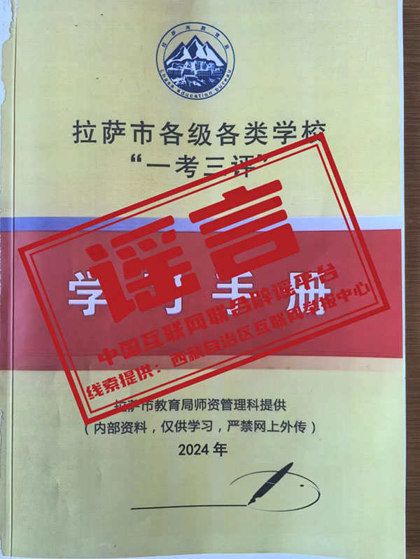 詳情:近期,西藏自治區(qū)拉薩市教育局接到教師反饋,稱有人以拉薩市教育局師資管理科名義,以50元/本的價(jià)格,售賣2024年《拉薩市各級各類學(xué)?!耙豢既u”學(xué)習(xí)手冊》。對此,拉薩市教育局發(fā)布辟謠聲明稱:我局2024年未印發(fā)“一考三評”學(xué)習(xí)手冊,未委托任何機(jī)構(gòu)和個(gè)人以任何形式向教師售賣2024年《拉薩市各級各類學(xué)?!耙豢既u”學(xué)習(xí)手冊》。請廣大教師保持高度警惕,不信謠、不傳謠、不造謠,謹(jǐn)防上當(dāng)受騙。(來源:“西藏舉報(bào)”微信公眾號、“拉薩教育”微信公眾號)