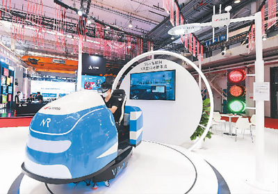 參觀者在2021世界5G大會展覽現(xiàn)場體驗5G+車聯(lián)網(wǎng)VR虛擬駕駛。新華社記者 任超 攝