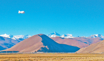 珠穆朗瑪峰前的“極目一號”Ⅲ型浮空艇。中國科學院供圖
