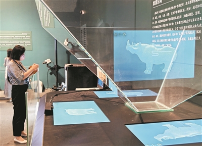 在“數(shù)說犀尊”展覽上,展廳綜合運(yùn)用了高清三維掃描、超高清顯示、人工智能、紅外感應(yīng)、增強(qiáng)現(xiàn)實(shí)等科技手段展示文物研究成果??萍既請?bào)記者 洪星攝