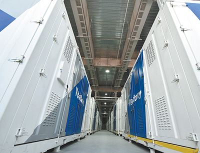 大連全釩液流電池儲能調(diào)峰電站的電池集裝箱。 中國科學(xué)院大連化學(xué)物理研究所供圖