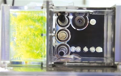 在問天艙生命生態(tài)實(shí)驗(yàn)柜小型受控生命生態(tài)實(shí)驗(yàn)?zāi)K中,魚類、植物和微生物協(xié)同參與——藻類光合作用產(chǎn)生的氧氣供斑馬魚呼吸,魚呼出的二氧化碳供藻類進(jìn)行光合作用,進(jìn)食產(chǎn)生的糞便則提供了藻類生長(zhǎng)的養(yǎng)料。在飲食方面,科學(xué)家專門設(shè)計(jì)了魚食,用注射器推進(jìn)“魚缸”。