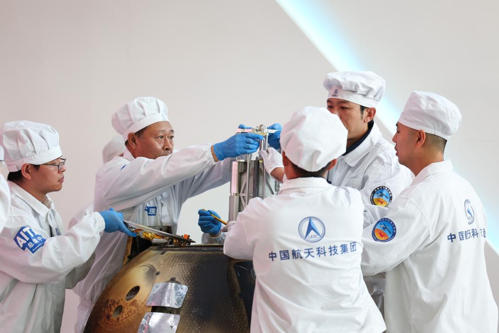 6月26日下午,科研人員對嫦娥六號返回器進(jìn)行開艙,檢驗(yàn)關(guān)鍵技術(shù)指標(biāo)完成情況。新華社記者 金立旺 攝