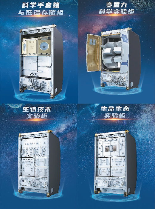 除了無容器材料實驗柜之外,天和核心艙內(nèi)還有高微重力實驗柜,為航天醫(yī)學(xué)分析、基礎(chǔ)物理研究等提供理想的微重力實驗環(huán)境。問天實驗艙部署了生命生態(tài)實驗柜、生物技術(shù)實驗柜、科學(xué)手套箱與低溫存儲柜、變重力科學(xué)實驗柜以及艙外暴露實驗裝置等科學(xué)實驗設(shè)施。夢天實驗艙則配置了13個標(biāo)準(zhǔn)載荷機柜,目前已裝載了超冷原子物理實驗柜、高精度時頻實驗柜、高溫材料科學(xué)實驗柜、兩相系統(tǒng)實驗柜、流體物理實驗柜、燃燒科學(xué)實驗柜等實驗“神器”,主要面向微重力科學(xué)研究。
