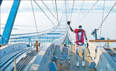 “相信在不久的將來,機(jī)器人會替代部分橋梁工程的人工操作環(huán)節(jié)?!敝薪欢骄盅啻夐L江大橋項(xiàng)目技術(shù)負(fù)責(zé)人羅航說,未來借助機(jī)器人完成巡檢,能大幅降低人員的勞動強(qiáng)度。(韓 鑫)