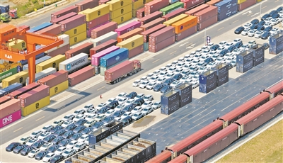 圖為等待裝車出口的新能源汽車。新華社記者 周牧攝