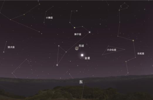 10月14日是農(nóng)歷的八月廿八,月亮以小月牙的形態(tài)與金星相合,周圍有獅子座的亮星相伴。臨近日出時天空還會被曙光染上橙黃色,暗星隱去,月牙、金星和獅子座的亮星交相輝映,觀賞性還是很不錯的。由于當(dāng)天月亮和金星都是在凌晨升起,所以大家需要起早欣賞這個天象。