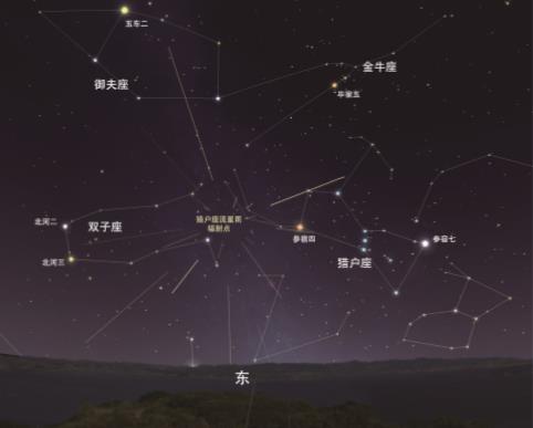今年獵戶座流星雨極大當(dāng)天為農(nóng)歷初五,月亮在前半夜很早就落下了,所以月光幾乎不會對流星雨的觀測造成干擾。獵戶座流星雨的群內(nèi)流星特點是速度極快而軌跡長,如果看到這樣的流星并且軌跡反方向指向獵戶座附近,那基本可以判斷為該流星雨的群內(nèi)流星。