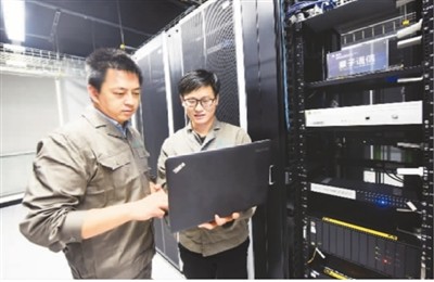 11月2日,國(guó)網(wǎng)杭州供電公司信息通信分公司工作人員在通信機(jī)房檢查量子通信設(shè)備。(人民視覺(jué) 龍巍 攝)