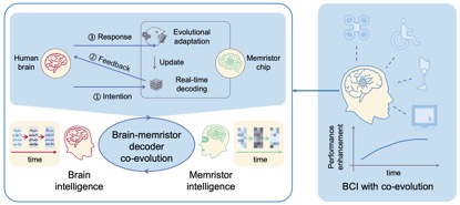 天津大學與清華大學的聯合研究團隊針對這一難題,發(fā)現腦電信號的非平穩(wěn)特性與任務腦電演變密切相關?;诖?,他們創(chuàng)新性地提出了“雙環(huán)路腦機協(xié)同演進框架”,并通過憶阻器神經形態(tài)器件加以實現。在“雙環(huán)路”框架下,腦與機的學習環(huán)路相互協(xié)同,共同促進系統(tǒng)性能的提升。