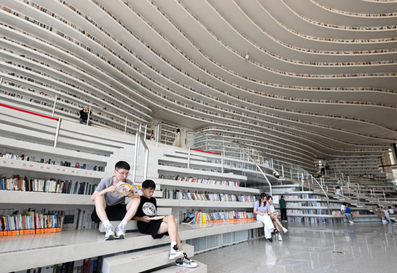 圖為市民在天津濱海新區(qū)圖書館內(nèi)閱讀。新華社記者 趙子碩 攝