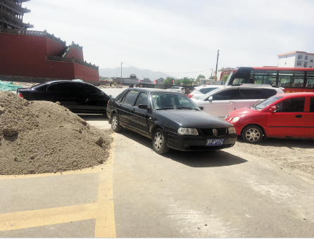 本報(bào)訊 6月2日,記者在北城門(mén)樓西北角看到,車(chē)輛停放混亂無(wú)序,有的甚至停放在通行的馬路上。而馬路中央堆放著一堆施工用沙,整個(gè)環(huán)境看上去不和諧。