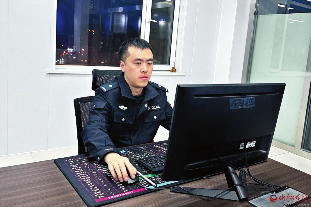 馬利君的從警生涯雖然不長,但他經歷的艱險、考驗和面對的挑戰(zhàn)卻是很多人一生都不曾遇到的。他用不懈努力、滾石爬坡的昂揚斗志抒寫著自己的警察故事。圖為馬利君在工作中。 (赫在榮)