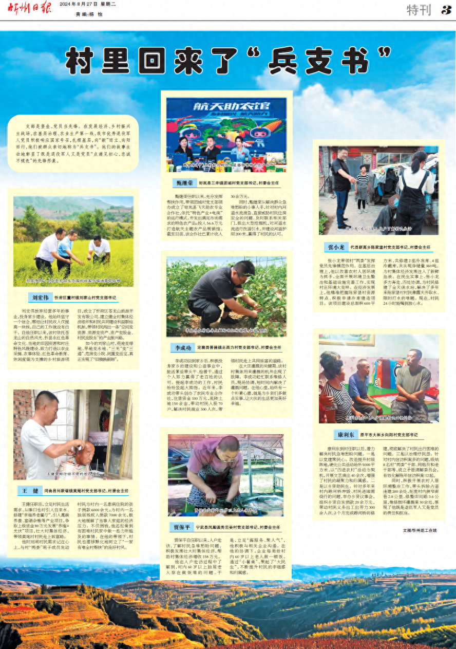 支部是堡壘,黨員當(dāng)先鋒。在發(fā)展經(jīng)濟(jì)、鄉(xiāng)村振興主戰(zhàn)場(chǎng),在基層治理、農(nóng)業(yè)生產(chǎn)第一線,我市優(yōu)秀退役軍人黨員積極響應(yīng)國(guó)家號(hào)召,扎根基層,向“新”而立、向陽(yáng)而行,他們被群眾親切地稱為“兵支書”。他們的故事生動(dòng)地彰顯了既是退役軍人又是黨員“點(diǎn)滴見初心,忠誠(chéng)不褪色”的先鋒形象。