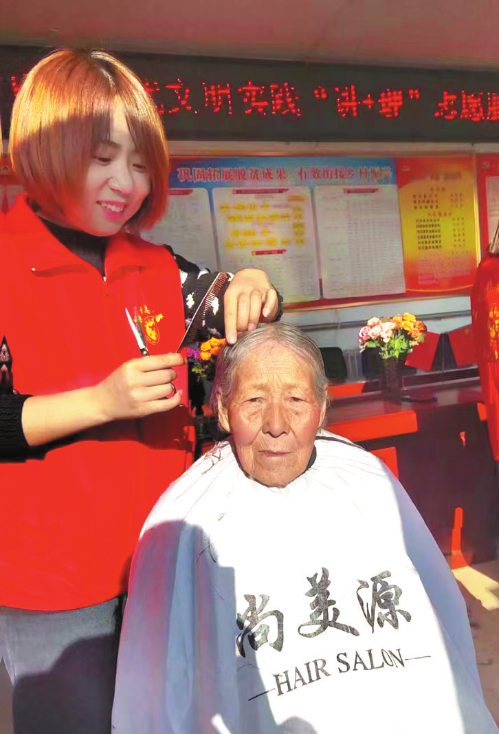 一聲問候,一杯熱茶,一句關(guān)心的話語足以讓人感到溫暖。今年35歲的王蘭蘭,志愿服務(wù)8年多,走過上百個(gè)村莊,經(jīng)她義務(wù)理發(fā)的人數(shù)超過數(shù)千人,光理發(fā)剪刀就用壞了12把。3年前張大娘半身癱瘓,為理發(fā)一事,張大娘的家人曾多次請(qǐng)人上門服務(wù),但常因“顧客”身體原因理發(fā)不方便而遭拒絕。王蘭蘭聽說后,當(dāng)即表示愿意為張大娘免費(fèi)理發(fā)。初次上門,正逢家人為張大娘清理身體上的污垢,她絲毫沒有嫌棄,盡管張大娘躺著理發(fā)相當(dāng)不方便,但她寧可彎腰屈膝也要為張大娘剪出一個(gè)滿意的發(fā)型。張大娘“嘮叨”著說:“你我之間不沾親不帶故,你愿意給我理發(fā),而且分文不收,你真是貼心人啊!”