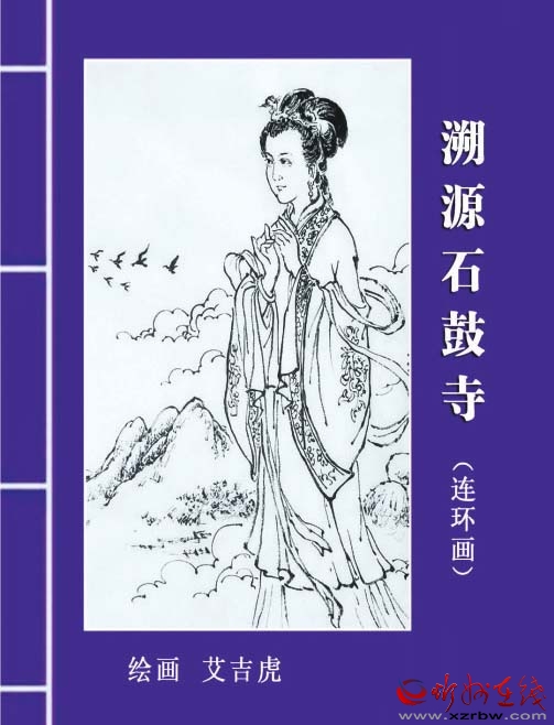 他的“小人書”插畫自帶一種中國傳統(tǒng)故事的“煙火氣”,這種寫實(shí)的筆觸體現(xiàn)了艾吉虎對(duì)生活細(xì)節(jié)的凝視。人物線描準(zhǔn)確地表現(xiàn)出主人公的身體結(jié)構(gòu)和肌肉起伏,這樣的細(xì)節(jié)表現(xiàn)正是來源于他對(duì)日常生活的細(xì)致觀察?!逗侣駮肥恰妒勒f新語》里記載的一個(gè)成語故事。原平名士郝隆七月七日出日中仰臥,人問其故,答曰:“我曬書?!爆F(xiàn)指人腹中裝書,很有學(xué)問。在“小人書”中,郝隆解開衣扣袒胸露乳曬著太陽,面露微笑而不失幽默之態(tài),他桀驁不馴的個(gè)性通過艾吉虎的畫筆表現(xiàn)得淋漓盡致。《梨鄉(xiāng)原平歷史故事》更顯精煉,作品純用白描,線條疏密有致,構(gòu)圖簡潔大氣,以有限的畫面給人以無限的想象,將梨鄉(xiāng)原平的美景盡鋪眼前,令人回味無窮。