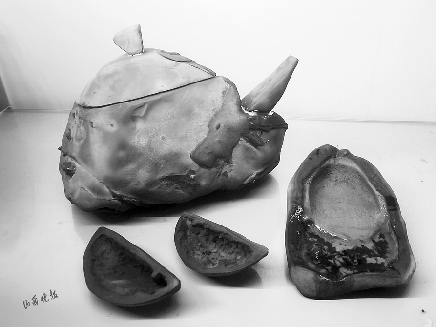 | 陽泉地層發(fā)現(xiàn)儲量豐富的木魚石資源,罕見的空心礦石,地質(zhì)學(xué)稱之為褐鐵礦結(jié)核 |