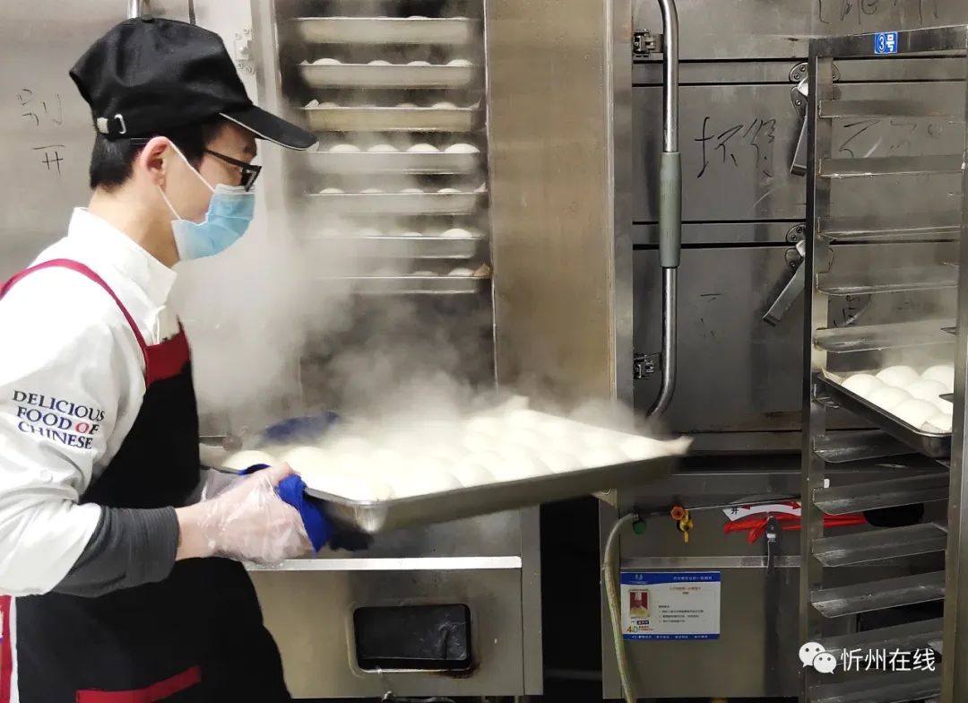 紅燒肉、過油肉、涼拌菜……12月2日下午,忻州丁方文化餐飲管理有限公司的廚師們正在有序忙碌著,一道道剛出鍋的飯菜被分餐員迅速分裝、打包、裝箱,他們要趕在18點之前送往忻州市級方艙醫(yī)院。