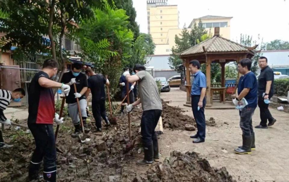 國(guó)家開發(fā)銀行鄉(xiāng)村振興部的田扶搖正和國(guó)家開發(fā)銀行的碩博志愿者隊(duì)一起,在社區(qū)清理淤泥:“大家都是利用周末時(shí)間自發(fā)前來(lái)的志愿者,有的同事還帶了家屬一起來(lái)支援災(zāi)區(qū),也都想力所能及地出一份綿薄之力。”